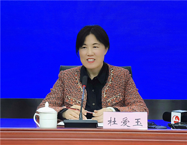 安徽省供銷社理事會副主任杜愛玉回答記者提問現場(孫軍/攝)