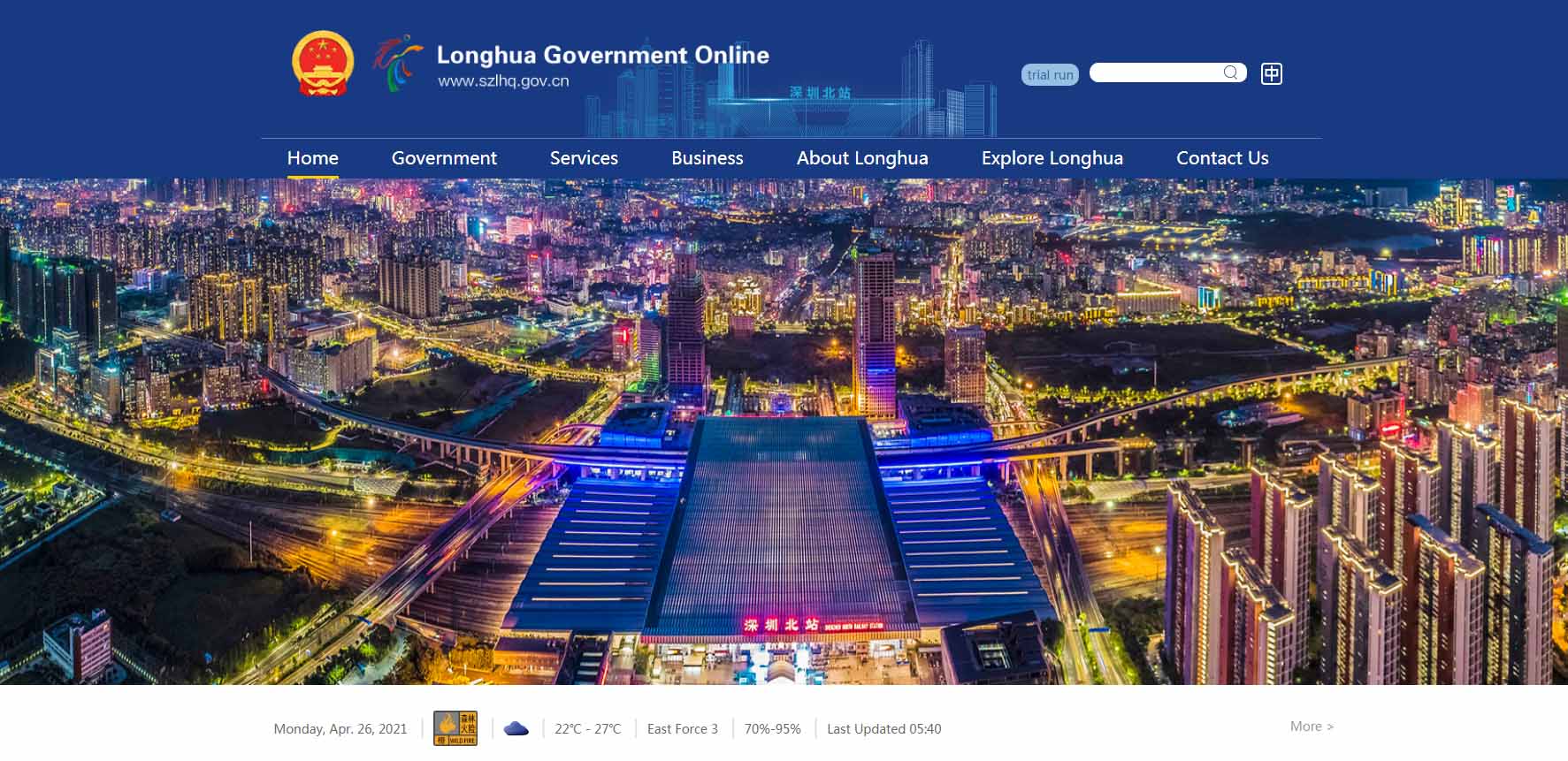 龍華區政府英文網站是政府提供服務的重要平台,是宣傳龍華形象、促進龍華發展的重要窗口。當前,龍華區正在搶抓「雙區」建設和綜合改革試點重大歷史機遇,全面建設數字龍華,加速建成中軸新城,高標準打造深圳都市核心區。