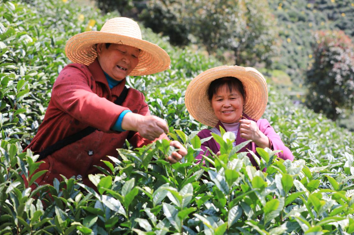 “家裏茶園有五六畝,一年一萬多塊錢,再加上在茶廠上班,一個半月搞個六七千元,日子過得越來越好。”村民蔣定雨是徽商茶業公司聘請的茶農,今年春茶開採以來,他和村裏10多名村民就來到了這裏,每天清晨他們搶抓有利時機採摘春茶,白天就在茶廠上班。
