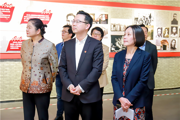 與會領導首先參觀了「赤色滬西青春向黨——普陀青年奮鬥足跡展」,一起回顧了普陀共青團百年來的奮鬥歷史。此次展覽是普陀共青團落實黨史學習教育的重要載體之一。今年來,團區委牢牢把握在青少年群體中開展黨史學習教育的重大意義,通過緊扣目標要求、激發學習活力、聚焦陣地創新以及推動成果運用等手段,堅持以組織化學習為基本形式,大力推進黨史學習教育在各級團、隊組織和青少年中掀起熱潮、學出成效。