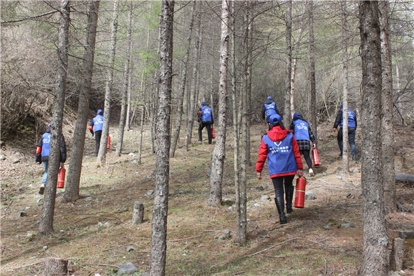 考慮到清明節全國各地都有祭祖掃墓的風俗,村民和作業工人又眾多,一旦發生意外情況,後果不堪設想,清明節當天,項目黨支部組織黨員和團員,戴上「監火員」袖章,組成巡邏隊一路巡山,全程提着近30斤的滅火器。三個多小時的地毯式搜索,將地勢較緩的近300畝山林區域全部巡邏完畢。針對山勢險峻、行程艱難的危險區域,開啟「天眼」,利用無人機沿山峰高空翱翔,進一步監測森林火情。