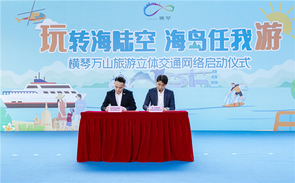 啟動儀式上,深圳市東部通用航空有限公司與澳門華民商務航空股份有限公司簽訂了空中航線戰略協議。該項目將推動直升機從橫琴島至萬山群島的通航服務,開通以高空體驗為主的海上新航線,讓旅途變成旅遊方式,為遊客帶來低空飛行旅遊的全新體驗。