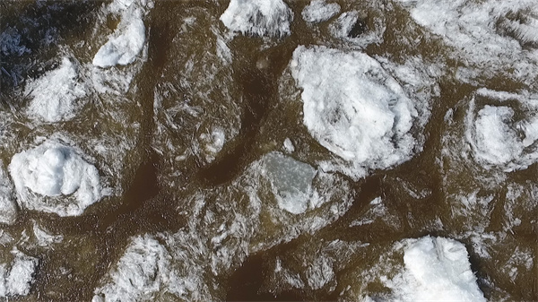 壯觀的開江盛景,在大自然的季節變遷中展現着獨特的美麗。通過航拍畫面可以看到,大量的冰排傾斜而下,互相撞擊、咔嚓作響,十分壯觀。冰與水的交融形成了一道獨特的自然景觀,彷佛渾然天成的山水畫卷。這樣的景色吸引了本地群眾和不少外地遊客前來觀看。他們紛紛拿出手機,記錄下難得一見的壯美瞬間。