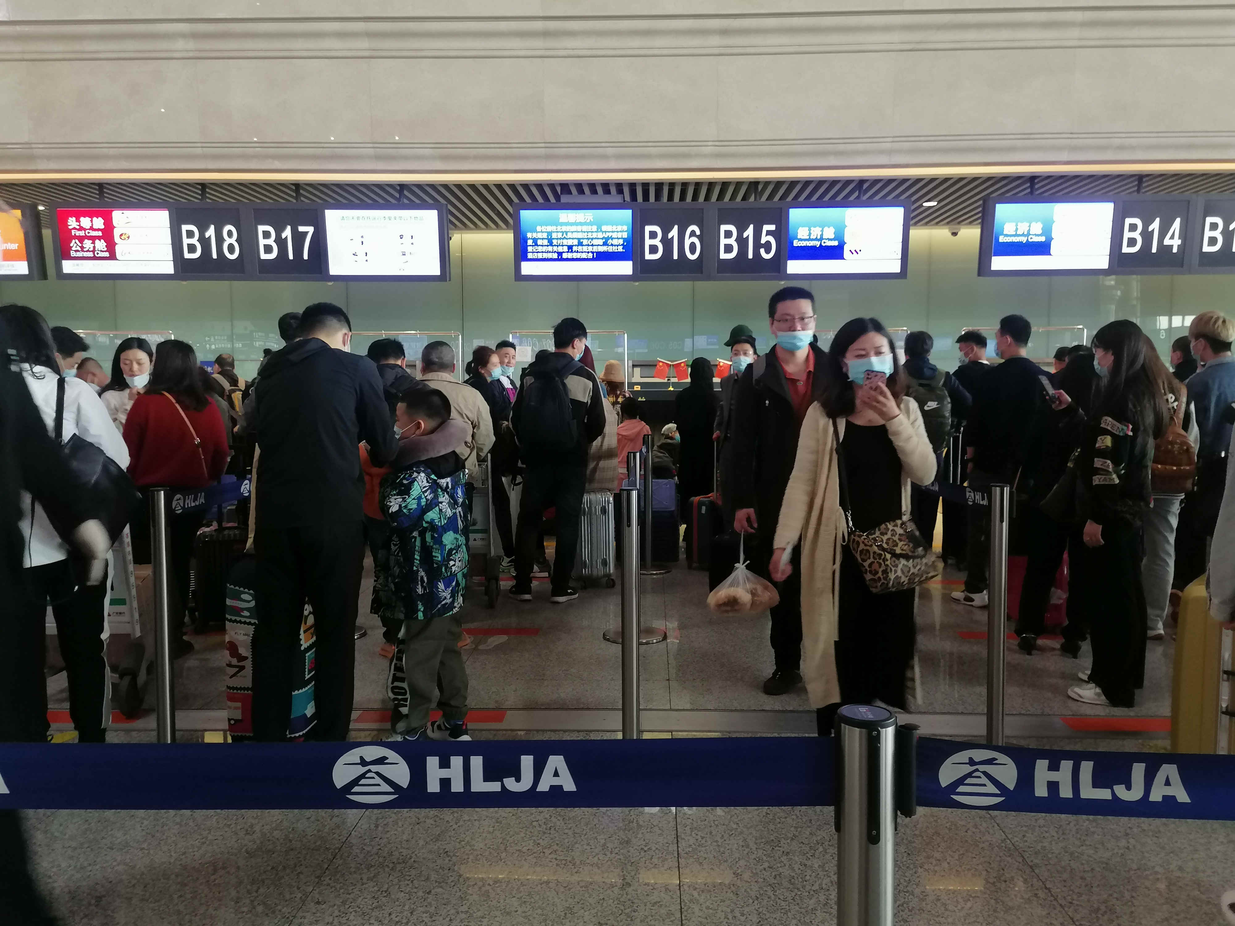 哈爾濱機場溫馨提示,雖然國內疫情形勢好轉,但仍需做好個人出行防護,請佩戴口罩進入航站樓等公共場所,等候排隊請保持安全間隔,避免聚集。(記者 張曉磊 通訊員 仇建)