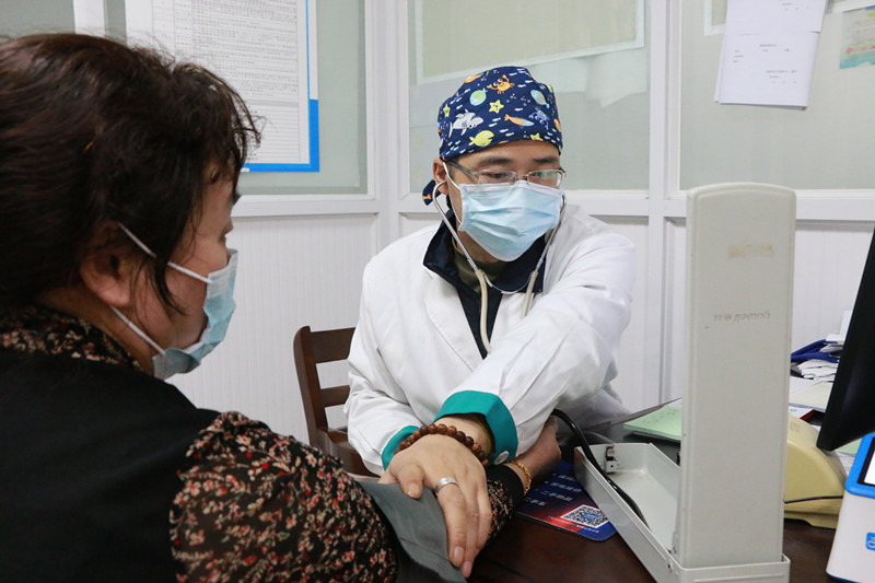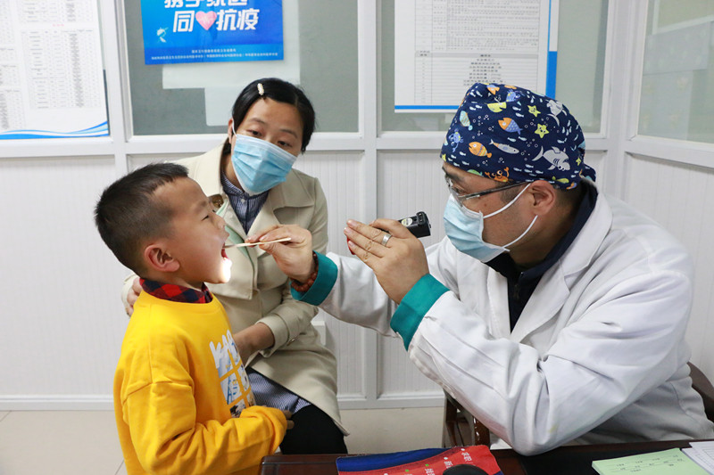 4月27日,在安徽黃山市屯溪區陽湖鎮衛生服務中心的醫護人員正在為轄區內前來就診的居民進行診治。