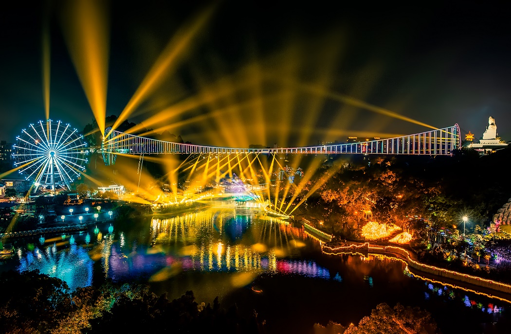 尤其值得一提的是,為了讓五一出遊的遊客能夠感受到東莞旅遊的精彩,在4月29日,將隆重上演水簾飛天項目,該項目將隱賢山莊獨有的玻璃橋、摩天輪完美結合,配以隱賢湖畔的波光粼粼,加上夜晚的瀑布燈光秀,從天而降,無論是素有英雄情節的武俠夢,還是唯美浪漫的奔月之旅,甚至是見證光之奇蹟的少年夢,都能在這裏得到完美的詮釋與演繹,無論是現代還是古裝,都能讓人流連忘返,忍不住留下這唯美的瞬間。