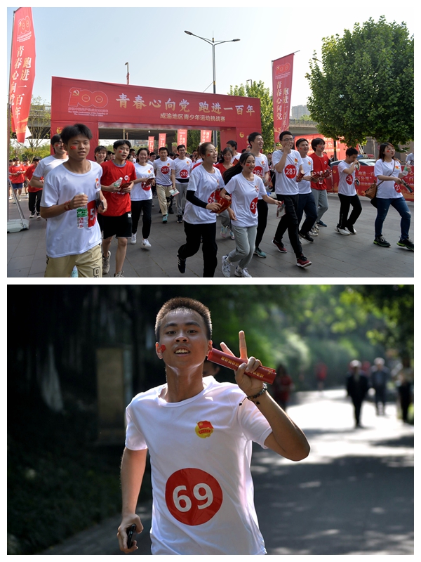 上午9時16分,隨着開賽槍響,來自成渝地區的300餘名青年選手如離弦之箭迅速沖了出去。他們將在清溪濕地公園內,以青春的名義、奔跑的形式、燃燒的激情慶祝建黨100周年,同時以競賽打卡的形式參與黨史學習教育。