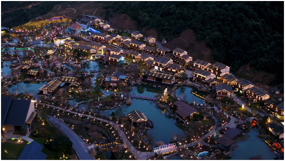 在燈火傾城的仙村夜色中,體驗一把古時的遊園盛會,穿一身漢服,提一盞花燈,漫步在古樸的街道上,在小橋流水間,穿越千年,重溫漢唐風韻。水幕電影《歸真紀》,真人實景演繹,再現仙人葛玄一生的故事,通過聲光電、水霧火、全息投影、鐳射、特效等新型舞臺技術及設備的應用,為遊客帶來一場精彩絕倫的沉浸式感官體驗。在朗朗星空下,盈盈燭光間,遊客們品嘗著美味精緻的菜肴,欣賞著流光溢彩的夜景,享受靜謐美好時光,感受別致的浪漫,宛如人在畫中游。