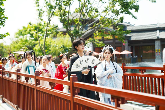 此外,方特還為本次的國風潮玩節準備了華服巡遊活動,身着廣袖襦裙的小哥哥小姐姐們在園區里緩步慢行,衣袂翻飛。引得遊客們紛紛駐足拍照,記錄下這百人同游的華服之美。同時,方特五一假期的延時營業讓遊客們可以暢快的打卡40+主題項目。看《孟姜女》悲歡離合的絕美愛情,坐上《伴你飛翔》領略祖國的大好河山,進入《神畫》穿越千年時空尋找古蹟,走入《熊出沒劇場》和熊大熊二共度一場歡樂之旅。