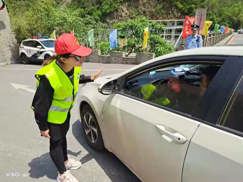 「您好,請問您是去景區嗎?距離景區還有500米。」「前面還有車位,請繼續行駛。」「請大家排隊買票。」「請大家出示安康碼。測溫後顯示體溫正常即可進入……」為提升廣大遊客的文明旅遊意識,志願者們協助景區開展交通疏導、維持入園秩序,提醒遊客掃碼、測溫,並向遊客宣傳文明出遊注意事項,做好諮詢接待等服務工作。