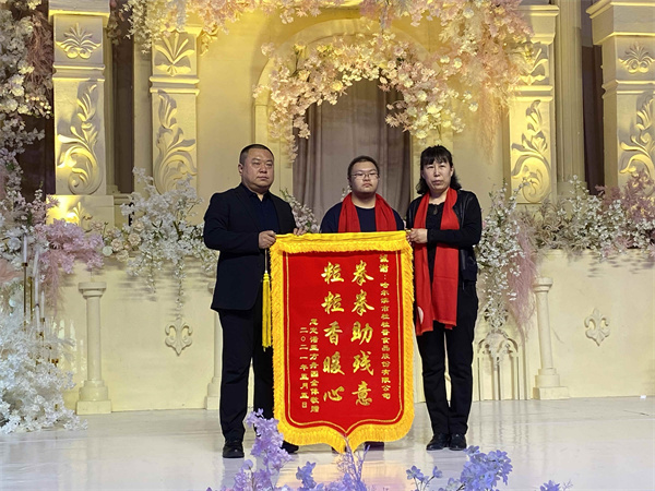 哈爾濱三五集團粒粒香股份董事長王東立接受感恩錦旗