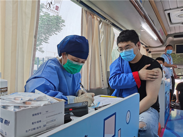 「上一次到區體育中心接種疫苗,算上來回車程,以及打疫苗、留觀時間,總共花了1個小時40分鐘左右。」企業疫苗接種現場協調組長王先生表示,自從昨天流動接種車開進園區後,大家的接種積極性都變高了。此前公司組織了四五批員工外出接種疫苗,最終接種人數只有400人左右,而單單昨天一天就有將近700名員工接種疫苗。