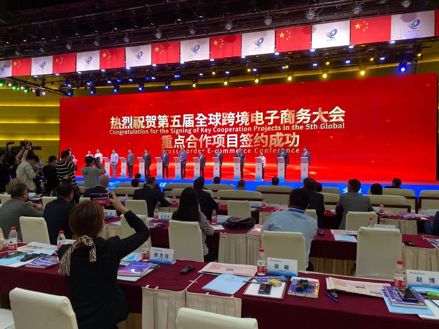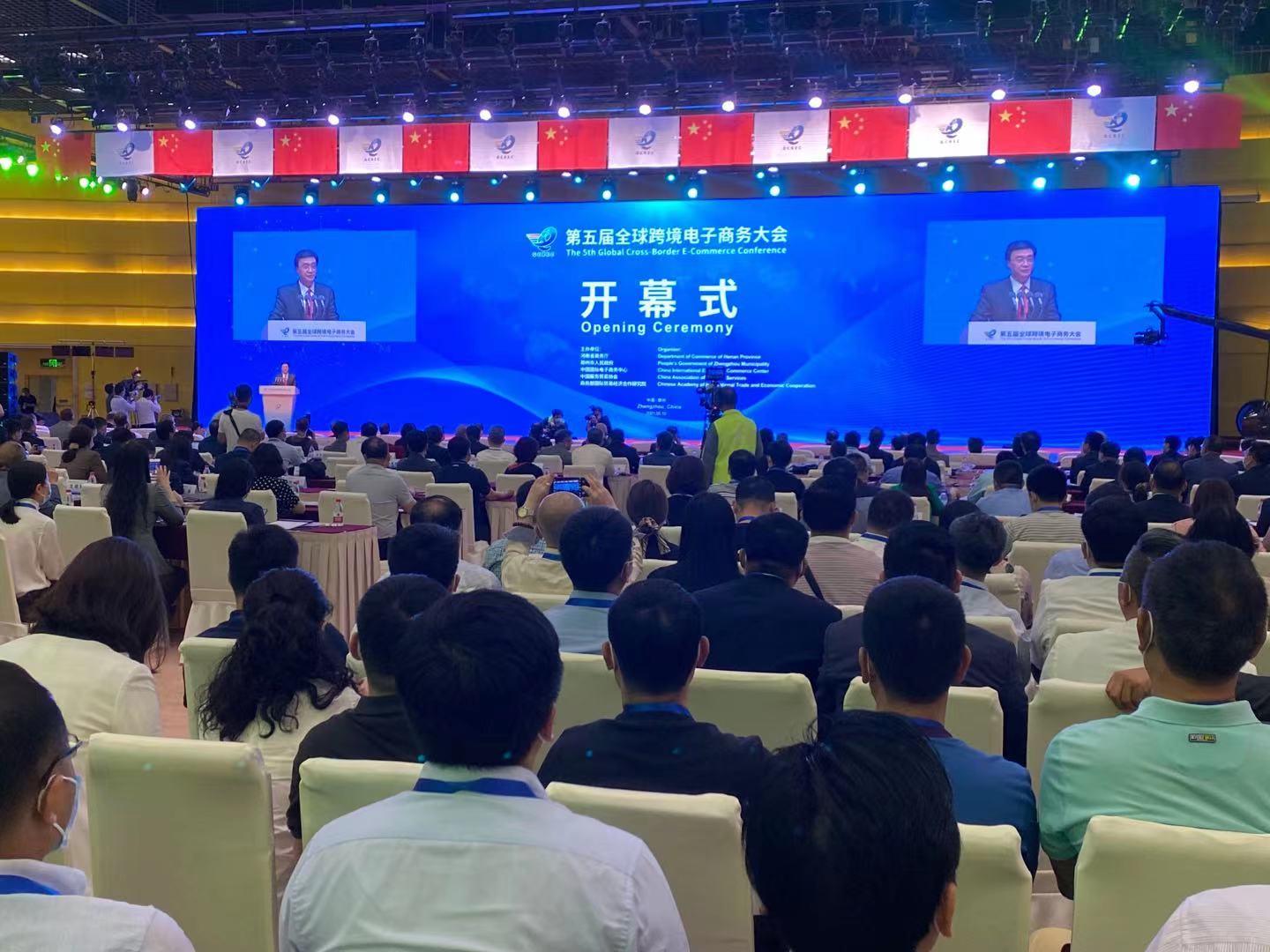 5月10日,第五屆全球跨境電子商務大會開幕式在河南鄭州舉行。河南省委常委、鄭州市委書記徐立毅,全球跨境電商大會主席龍永圖,上海合作組織秘書長弗拉基米爾·諾羅夫先生,共同啟動開幕。