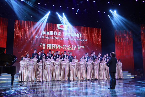 據了解,「永遠跟黨走 逐夢新時代」惠州市2021年「百歌頌中華」歌詠活動由中共惠州市委宣傳部牽頭,聯合市直機關工委、市教育局、市文化廣電旅遊體育局、市總工會、團市委、市婦聯、市文聯等單位共同主辦,目的是為慶祝中國共產黨成立100周年,充分發揮紅色文藝作品在黨史學習教育中的作用,通過文藝作品的感染力和穿透力,為該市黨史學習教育營造濃厚社會氛圍,豐富基層群眾文化生活,教育引導廣大黨員幹部、市民群眾堅定理想信念、築牢初心使命。