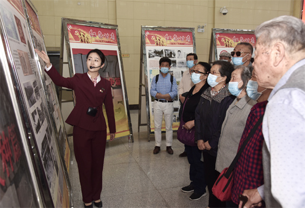 離退休老黨員和學生黨員在內的六百餘人到場參觀學習,該院黨委書記王定峰致辭並與大家一同觀展。(記者 寇剛)