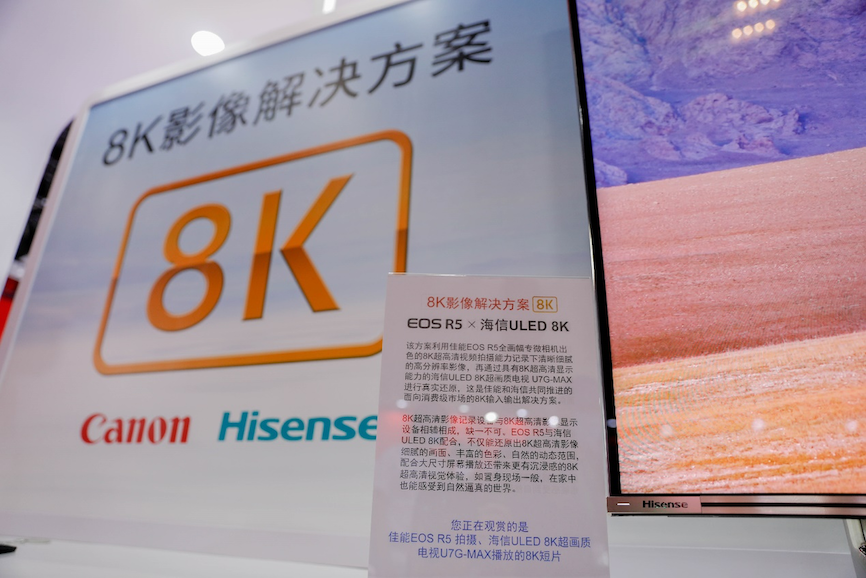 據悉,此次雙方聯合展示的8K影像解決方案,是面向民用消費級市場的8K輸入輸出解決方案,該方案利用佳能EOS R5全畫幅專微相機出色的8K超高清視頻拍攝能力記錄下清晰細膩的高分辨率影像,再通過具有8K超高清顯示能力的海信ULED 8K超畫質電視 U7G-MAX 進行真實還原。8K超高清影像記錄設備與8K超高清影像顯示設備相輔相成。EOS R5與海信ULED 8K配合,不僅能還原出8K超高清影像細膩的畫面及自然的動態範圍,配合大尺寸屏幕播放還帶來更有沉浸感的8K超高清視覺體驗。