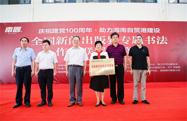 5月14日,“慶祝建黨100周年,助力海南自貿港建設”全國新聞出版界專題書法作品聯展首場展出,在海口江東楓葉國際學校開幕。