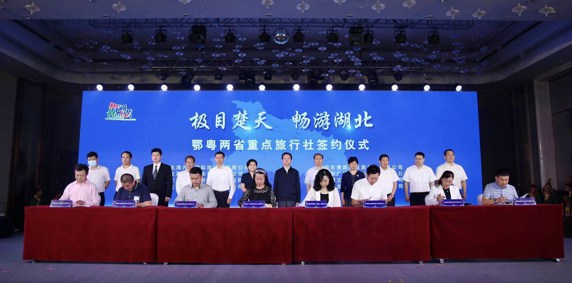 推介會現場,來自湖北省宜昌市、十堰市、荊州市、神農架林區的四個城市代表進行了文旅推介,以及來自柴埠溪景區、武當山景區、洪湖紅色生態旅遊區和神農架生態旅遊區這四家重點景區推介。現場,湖北海內外國際旅行社,湖北嘉程國際旅行社,湖北省海外旅遊(集團)有限公司,湖北順達國際旅行社等4家旅行社與深圳當地4家旅行社簽署合作協議。