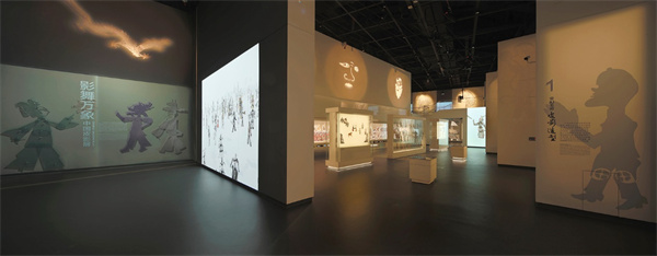 位於五層的「影舞萬象·偶戲大千——中國皮影木偶展」 包含皮影、木偶兩部分內容,2140件/套展品按照皮影木偶文物到戲劇演出,再到傳統文化的構架,全景式展示了影偶文化的內涵和外延。而中法展陳團隊、國際知名照明設計公司的深度合作,則讓展覽以最國際化的展陳藝術語言詮釋最中國、最鄉土的傳統傀儡戲藝術。