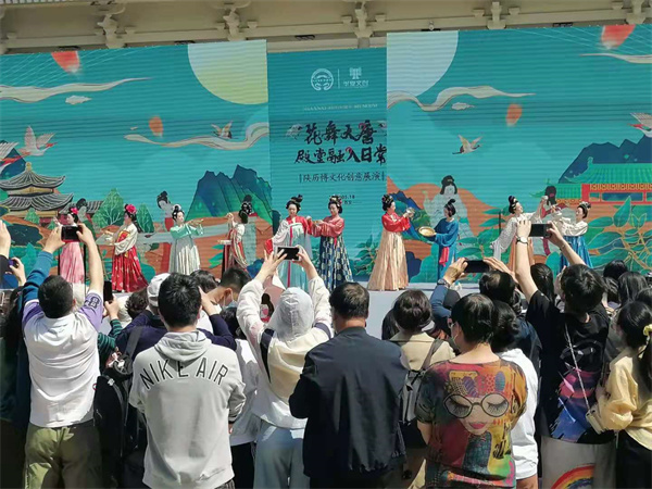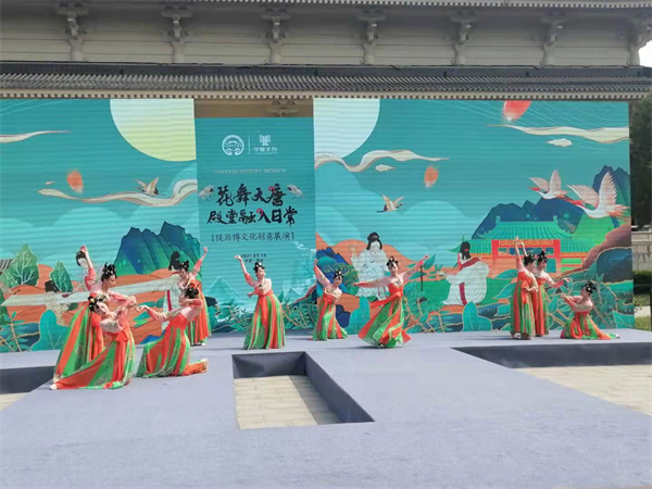 「國際博物館日」當天,陝西歷史博物館以「花舞大唐·殿堂融入日常」為主題,在博物館庭院裏搭起T台,一線工作人員變身「走秀模特」,為觀眾呈獻了一場精彩紛呈的視覺盛宴。
