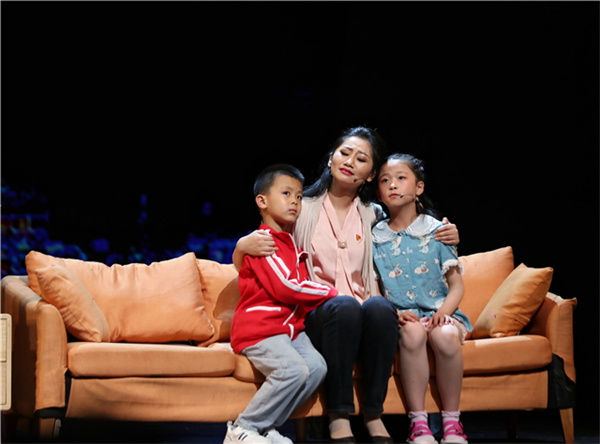 「媽媽在執行一項秘密任務,就是在月亮上種達瑪花……」舞台上,整日忙於扶貧工作的「張小娟」,夜晚回到家如是告訴孩子。舞台下,現場觀眾被一幕幕展現張小娟生前工作的場景所深深感動,頻頻拭淚。