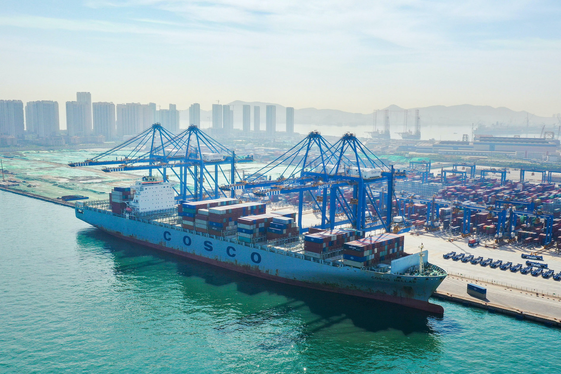 「中遠希臘」輪靠泊山東港口青島港自動化碼頭 山東港口供圖