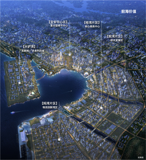 前海灣作為粵港澳大灣區發展的戰略重地之一,隨著“雙擴區”政策落地實施,為前海灣加快打造世界級城市新中心奠定基礎。其中,寶安中心區以“三心一軸一帶”的前沿規劃,政府千億投資注入,騰訊等頭部企業進駐,從政策、產業、配套、資金等多維度激發前海灣的生命力。在雙重國家級戰略驅動、城市政策支持指引之下,前海灣將引領深圳灣、蛇口灣,三灣共振啟幕深圳下一個輝煌時代。