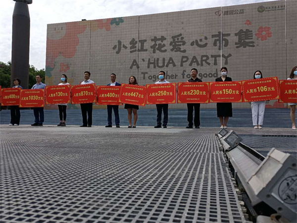 5月19日,以「一塊做好事」為主題的「小紅花愛心市集」活動在陝西省西安大唐不夜城舉行。活動現場,14家愛心企業慈善捐贈4336萬元,展覽了14家愛心企業在騰訊公益平台上線的15個慈善項目。與會領導共同啟動愛心市集開市。