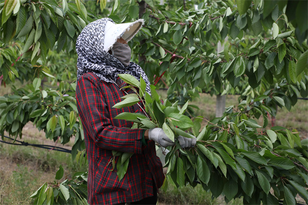 當地村民在果園裡務工