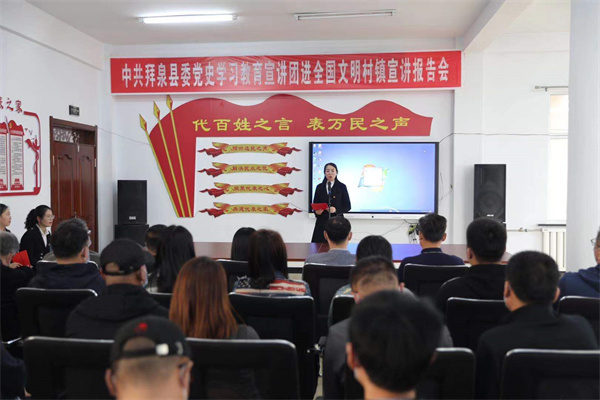 在省、市委部署此項工作後,拜泉縣高度重視,迅速行動,於4月21日在該縣國富鎮自治村與省市同步舉辦了啟動儀式,研究制定下發了《拜泉縣基層黨史專題宣講工作方案》,制定了《全縣城鄉基層組織「七個一」學習教育活動工作方案》、《拜泉縣城鄉基層組織「七個一」學習教育活動宣講工作方案》。組建70支黨史宣講小分隊,進基層進行宣講。以省委印發的《黨史學習教育宣講提綱》、《黨史學習教育基層宣講提綱》為依據,以龍江「四大精神」宣講視頻為素材,編寫《錚錚鐵骨魂,跨越時空的永恆力量》《為蘇維埃流盡最後一滴血》等黨史宣講故事8個,組織開展了全縣城鄉基層組織「七個一」學習教育活動黨史宣講集體備課會,對全縣宣講骨幹進行集體培訓,同時將開展全縣黨史學習教育進基層宣講試講會暨第4場黨史故事會。截至目前,共舉辦「七個一」黨史宣講18場、主題展覽18場次。