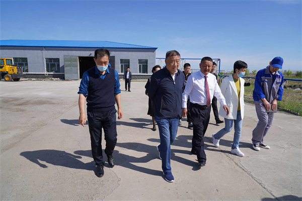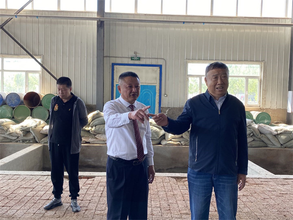 北方栗度酒業有限公司董事長王昆(左三)陪同栗永清(左二)一行參觀調研