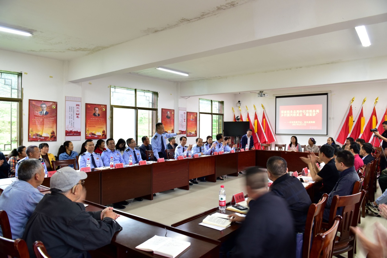 這一天,是國家稅務總局懷化市稅務局向通道侗族自治縣隴城村派駐鄉村振興工作隊的第五天,該局黨委書記、局長盤海源帶領在家的班子成員和相關科室負責人,專程來到隴城村開展走訪和調研。在座談會上,盤海源主動為黨員和群眾開展黨史學習教育「微宣講」,上了一堂名為《情牽侗鄉,讓黨旗在紅土地上高高飄揚》的「微黨課」。盤海源在「微黨課」中,結合今年4月25日,該局黨委理論學習中心組走進安江農校雜交水稻紀念園和林泉藥業有限公司,開展「學史增信」專題學習暨為納稅人繳費人辦實事活動的所學所思所悟,向黨員和群眾講述了中國共產黨領導下的我國雜交水稻發展史和科技進步史,進一步增強了大家的發展信心和必勝信念。並結合隴城村的實際,把林泉藥業有限公司以「公司+農戶」的形式帶動當地百姓共同致富的故事講給黨員和群眾聽,鼓勵隴城村立足村情特點,大力發展中藥材種植等林下經濟作物種植,發展集體產業,吸引投資等,帶動村民共同致富奔小康。同時,盤海源要求駐村工作隊員們 「切實扛牢扛實鄉村振興的擔當與使命,把駐地當家鄉,把百姓當親人,要當好引領百姓在鄉村振興路上負重前行的旗手,舉好旗、護好旗,讓黨旗在紅土地上高高飄揚!」