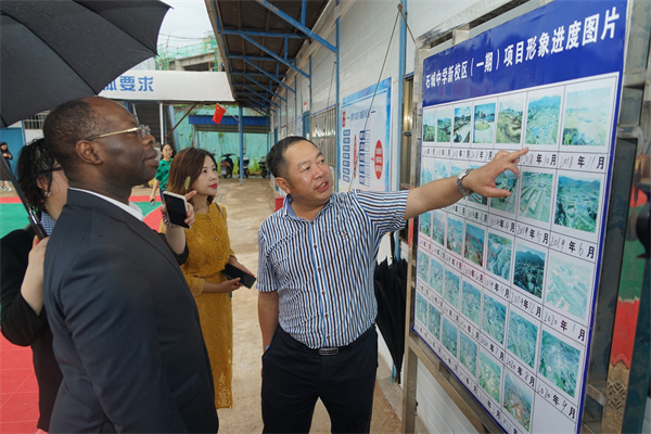 19日,恩東·埃拉大使前往石城中學新校區PPP項目,考察工程建設情況。該項目由中鼎市政分公司承建,是中鼎首個PPP項目和單體合同額最大的項目,是贛州石城縣“六大攻堅”重點項目和民生民心工程,新校區總占地面積約380畝,建設內容包括16棟單體建築,能容納學生6500人。在已初步驗收完畢的新校區內,市政分公司黨總支書記、總經理吳建國向大使逐一介紹了項目承接、規劃、實施等情況,並帶領實地觀看。