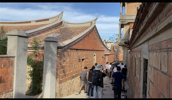 晉江是中國著名的僑鄉,有十戶九僑之稱,在僑鄉文化博物館——梧林古村落,採風團跟隨講解員的腳步,尋蹤僑情僑史。梧林傳統村落以「體驗式閩南僑文化度假目的地」為主題,保留了完整的百年建築群,涵蓋了閩南官式大厝、中西合璧民居、哥德式建築以及古羅馬式建築兩百多棟,堪稱華僑歷史博物館和閩南文化後花園。在古村落里,有一座僑批館,為梧林華僑代表人物蔡順意所建,建造時恰逢抗日戰爭,蔡順意毅然把準備用於裝修僑批館的款項全部捐給抗戰事業,從而未能完成該建築的內部裝修。現僑批館通過重新整修,以展示僑批為主,同時包括老照片、華僑史料、僑批經營老物件等,體現了海外僑胞艱苦打拼的奮鬥歷史,僑批經營者誠實守信的創業史,還有愛國愛鄉、熱心公益的家國情懷,勤儉節約的優良傳統文化傳承,徜徉在紅磚古厝的街頭巷尾,那些曾經被遺忘的人和物,再次鮮活起來。