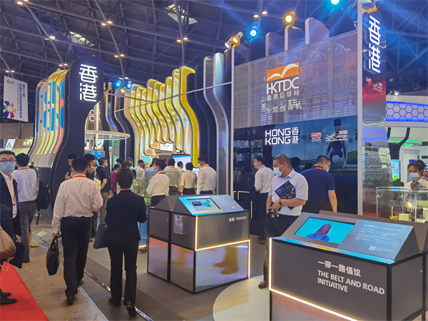 據了解,本屆中博會「香港館」佔地140平方米,以「量子躍遷」為設計概念,寓意「銳意進取,以創新科技求變」。通過運用新材料製成的開放性波浪結構,呈現出香港在創新和科技領域的「動感和活力」。表達出香港憑藉「一國兩制」的優勢,在繼續保持穩定和開放,在提升作為國際金融、貿易、航運中心的同時,更把握「十四五」規劃及粵港澳大灣區建設的機遇,推進創新科技、環保技術、醫療健康等行業的發展,將香港建設成為國際創新科技中心,更好地融入國家發展大局。