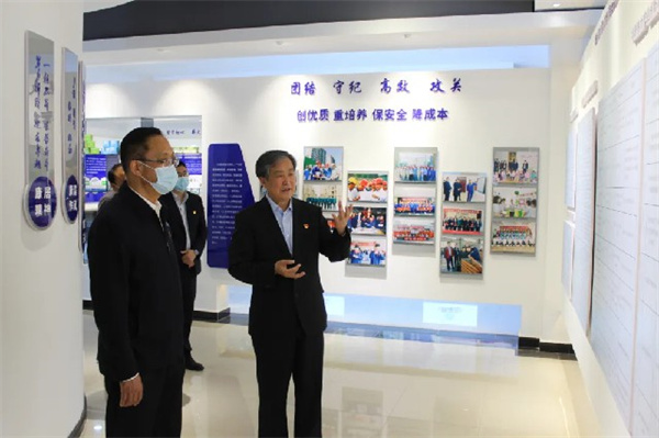 在新疆華源集團黨委書記、董事長,銀朵蘭葯業董事長李俊和集團黨委委員的陪同下,工信廳黨組書記李剛一行參觀了「李俊勞模和工匠人才創新工作室」,着重了解了民族葯創新發展和產業園建設情況、華源熱力節能減排和智慧供熱系統以及綠色建築成套技術的應用等。