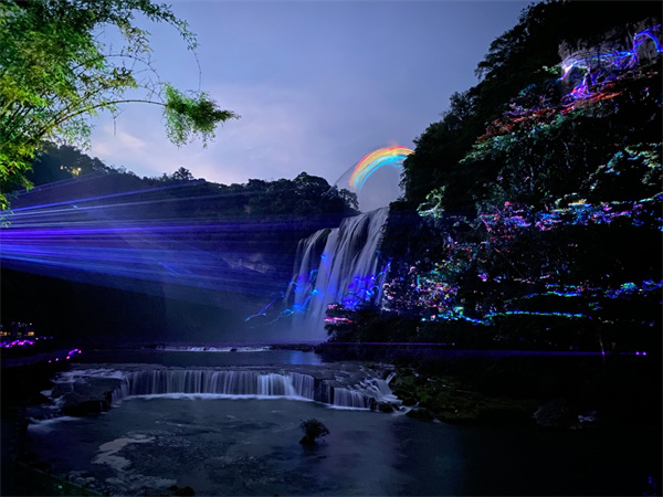 夜遊黃果樹位於黃果樹大瀑佈景區,是「自然奇觀」、「傳統文化」和「創新科技」的共融之作,也是國內首個以5A級自然峽谷景區為載體打造的沉浸式光影夜遊。項目在保護瀑布原生態的前提下,藉助光影科技,凸顯自然之美,原生之美,和諧之美,最終呈現「天瀑奇觀」的勝境,將黃果樹瀑布這個獨特景點,打造成有別於日間體驗的「超震撼」沉浸式光影視覺盛宴。