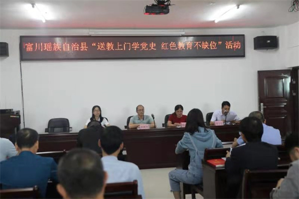 富川瑤族自治縣開展流動黨員「送教上門學黨史 紅色教育不缺位」活動。