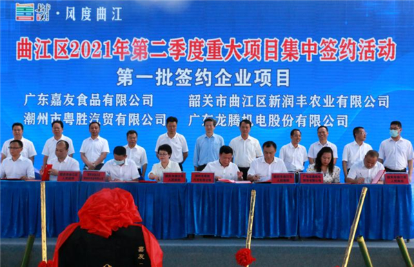 5月29日上午,廣東省韶關市曲江區在嘉友食品(韶關)有限公司餅乾生產基地舉行2021年第二季度重大項目集中簽約、開工、竣工活動,本次活動簽約+開工+竣工項目總投資共35.94億元,另外還設了4個開工、竣工活動分會場。