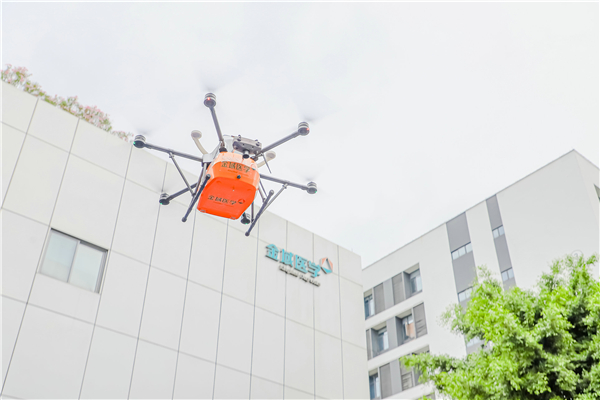 一架載着生物樣本的多旋翼無人機從廣東省第二人民醫院(廣東省應急醫院)緩緩起飛,飛到90米的高空後,隨即以50km/h的最高時速,飛往位於廣州國際生物島的金域醫學總部實驗室。正常車輛運輸需要30分鐘的路程,縮短到10分鐘。2021年5月31日,由廣州金域醫學檢驗集團股份有限公司(簡稱「金域醫學」)主辦的無人機助力醫療科技冷鏈物流暨全國首飛儀式在廣州和杭州同步啟動。除了廣州的首飛外,當天金域醫學在杭州也同時開通了無人機配送服務,並完成了與浙江大學醫學院附屬第二醫院的首次配送。