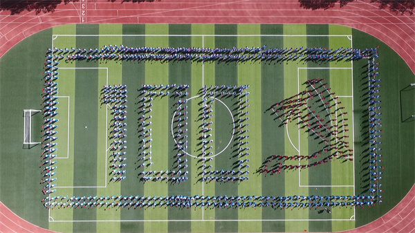 在呼瑪縣第一小學的操場上,由全校600餘名師生共同組成黨徽、100的造型圖案,在四層樓高的巨幅國旗映襯下,蔚為壯觀,一面面小紅旗在學生們手中揮舞,師生們懷着崇敬的心情,共同演唱《沒有共產黨就沒有新中國》。氣勢磅礴的開場節目,表達了呼瑪縣廣大師生學黨史、頌黨恩、跟黨走,隆重慶祝建黨100周年的激動心情。
