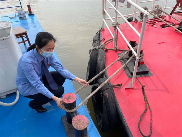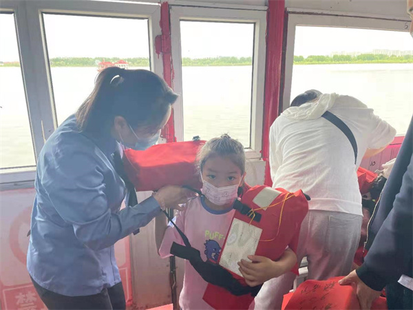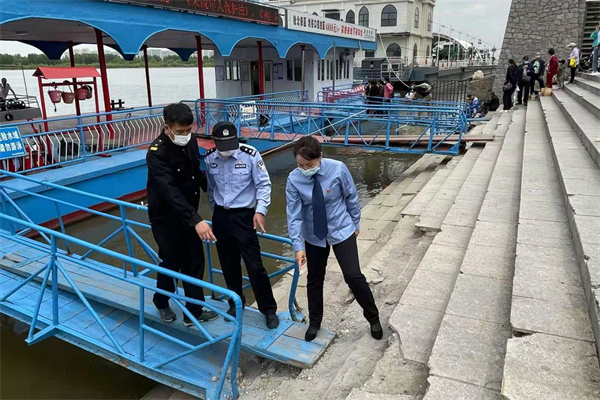 幹警們還重點檢查了碼頭安全防護欄、系纜樁等設施安全,及遊船消防、救生設施配備、船員持證等情況,對遊船及碼頭的消殺工作進行了排查,並現場指導乘船兒童穿戴救生衣。劉穎建議責任單位要加強對船員的應急訓練,通過素能培訓和實戰演練等方式,提高船員應急能力,保障遊船和乘客安全,並督促碼頭做好疫情防控工作。