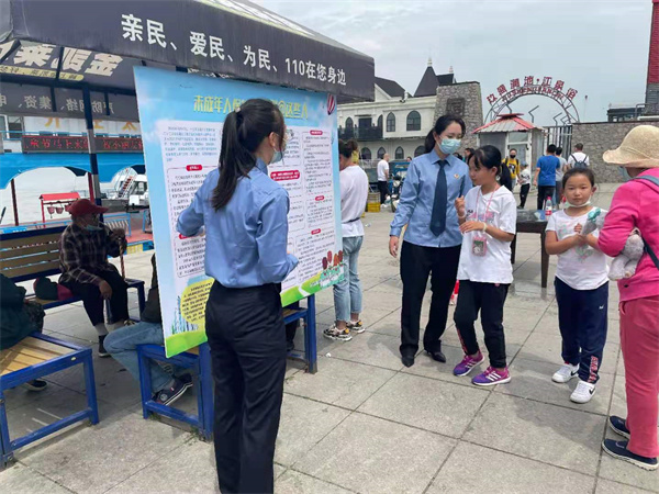 5月30日,哈爾濱市道外區人民檢察院黨組成員、副檢察長劉穎帶領第七檢察部全體幹警來到交通集團輪渡碼頭,宣傳即將施行的《未成年人保護法》《預防未成年人犯罪法》(以下簡稱「兩法」),並聯合哈爾濱市公安局航運分局下江派出所民警,對轄區遊船碼頭進行了專項安全檢查,多措並舉確保遊船航行安全和遊客人身安全。