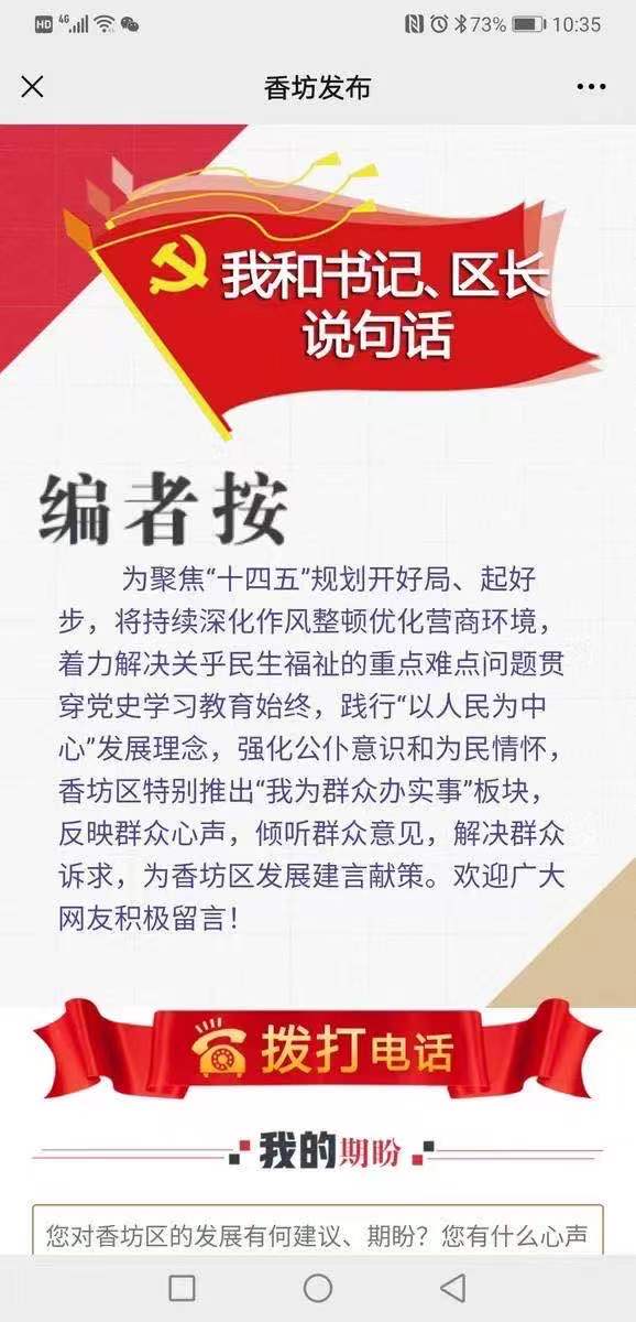 一是打造「我和書記區長說句話」互動平台。設立全市首家「我和書記、區長說句話」互動留言板和統戰人士「為民服務留言板」,並公佈近20部主要民生部門電話,區委、區政府專項督辦,強力推進群眾訴求辦理,進一步暢通了服務群眾「最後一公里」。啟動以來,共回復群眾留言128條,一批涉及小區髒亂差、房屋漏水、百姓吃水難、物業管理、房產證辦理、棚改拆遷、交通出行等民生問題得到即時解決或列入整改事項。