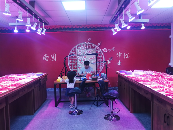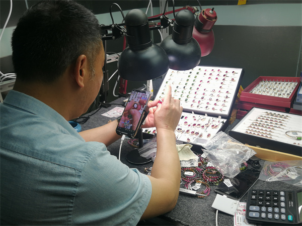在參觀基地的直播間時,記者目睹了一對夫妻直播銷售珠寶的過程,他們僅僅用兩台手機,根據網友的要求,不厭其煩的詳細介紹每一個珠寶產品,從產品的質量、克重、樣式大小、成分、價格等方面一一答疑,務求使消費者購買到滿意的珠寶。店主說「在抖音電商直播基地銷售珠寶,不僅節約了店鋪的成本,而且工作時間更有彈性,在家鄉就能夠從事這個行業,不用再外出打拼。」
