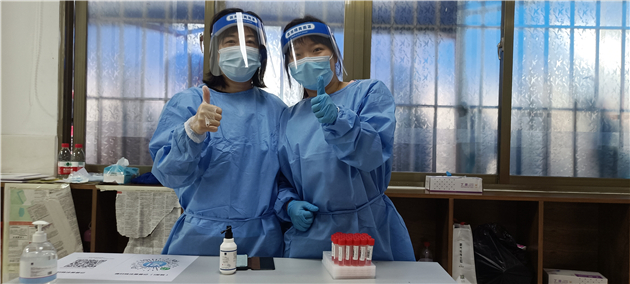 在龍珠花園檢測點的醫務工作者李時光和陳奕祺,據悉,她們都是深圳市中醫院腫瘤科的護士,5月30日,在接到醫院發佈的招募人員通知後,兩人不約而同地第一時間報名,請戰支援一線。