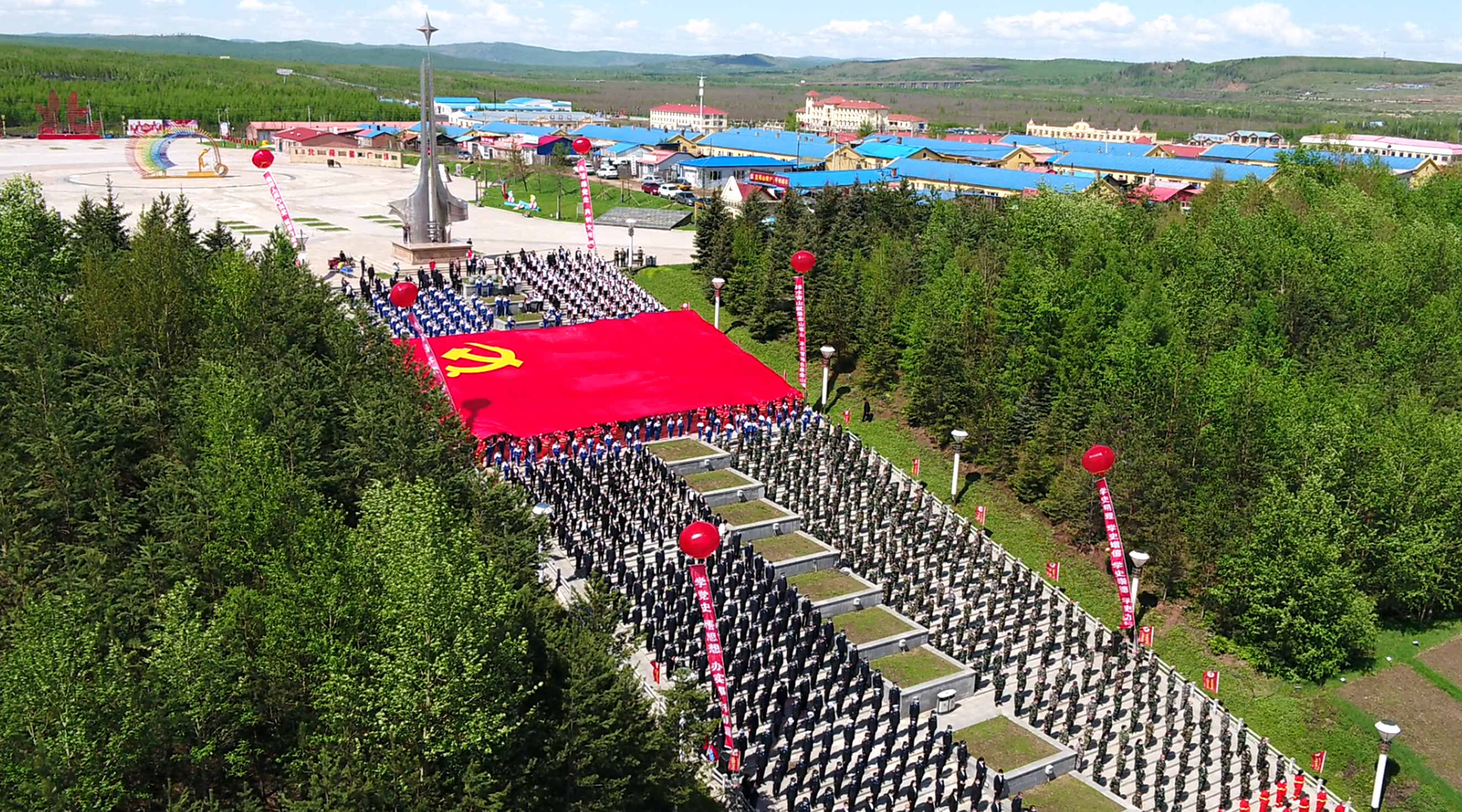 為慶祝中國共產黨成立100周年,6月4日,在祖國最北端的黑龍江漠河市,1500餘名黨員幹部、職工群眾通過開展「傳承百年志 奮進新征程」慶祝建黨百年黨旗接力活動,向偉大的黨獻上最誠摯的祝福。