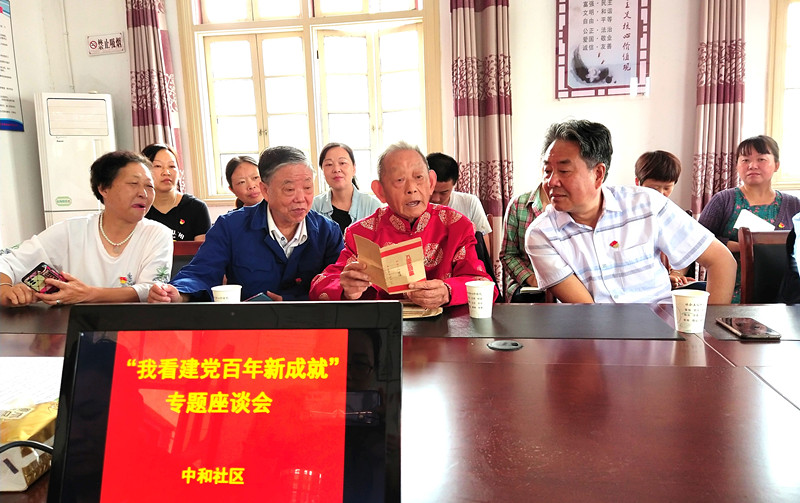 6月4日,安徽歙縣徽城鎮中和社區舉辦“我看建黨百年新成就”座談會,92歲高齡的老黨員江培德在講述自己所經歷的革命史、戰鬥史、創業史,暢談身邊發生的新成就、新變化。