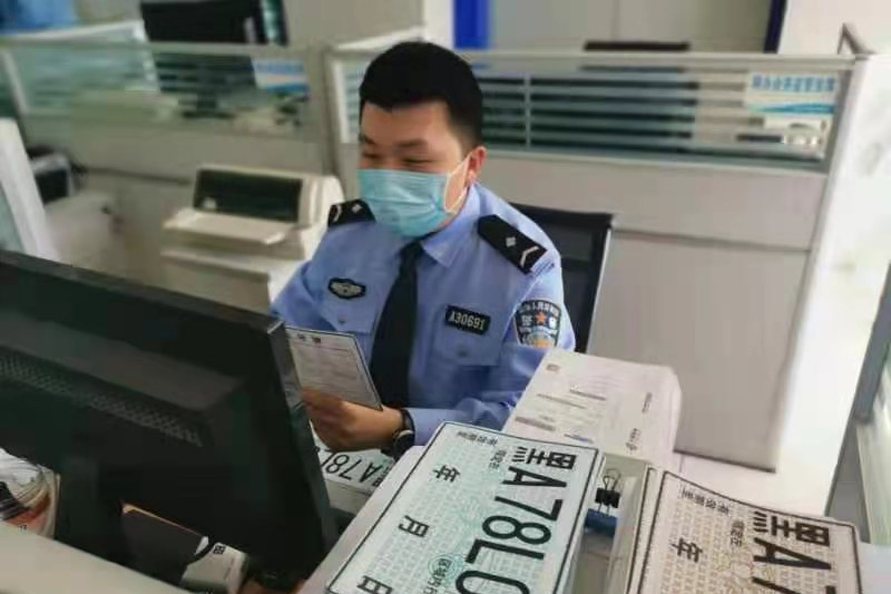 為更好服務群眾,證照科設置警力在車管所一樓服務大廳專門為群眾指導辦理互聯網選號業務,每次群眾挑選到心儀的吉祥號,大廳里都會響起熱烈的掌聲。