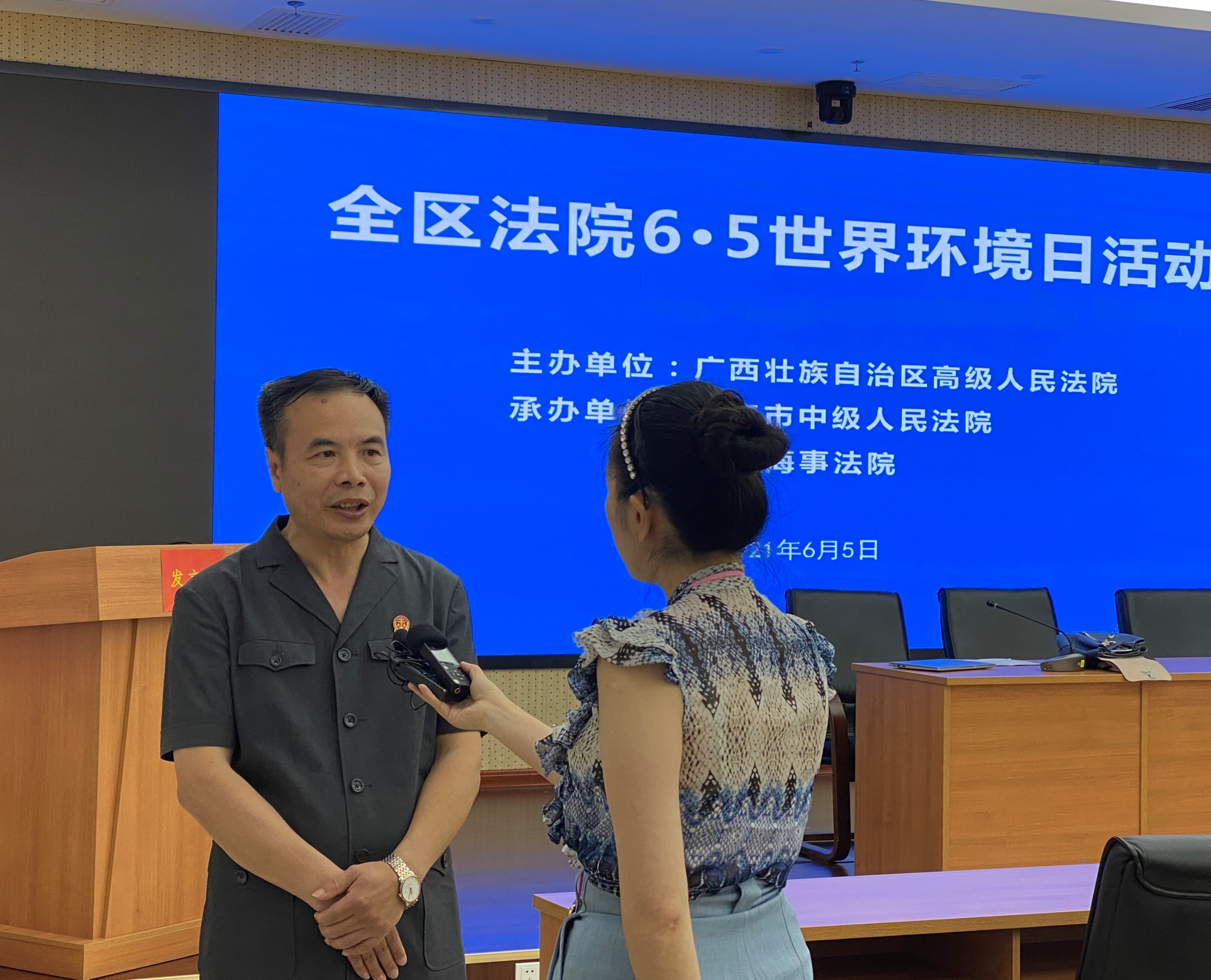廣西壯族自治區高級人民法院環境資源審判庭庭長蔣太仁接受記者採訪